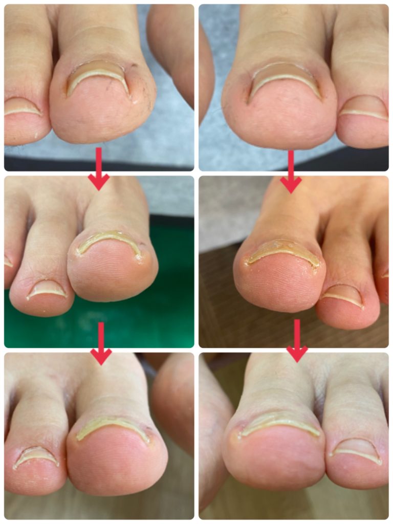 皮膚へ食い込みかけていた爪の形が改善し、見た目も見違えるほどきれいな状態へと変化しました。